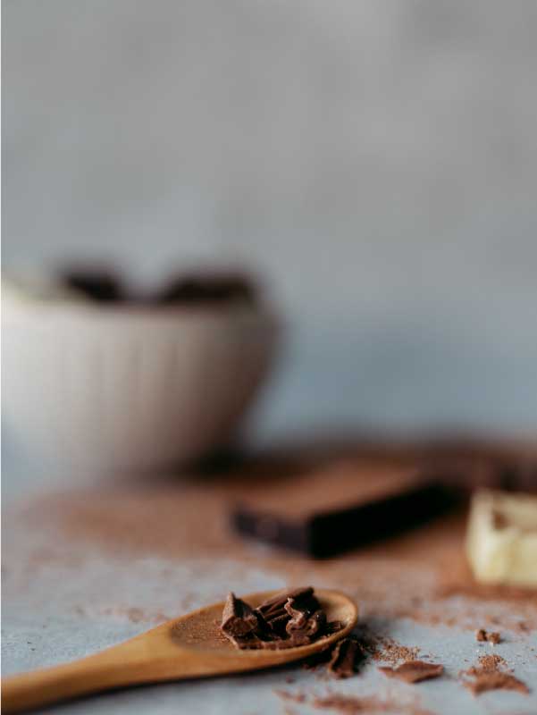 Todo es de origen natural y/o orgánico, nuestros proveedores son productores locales que, con amor y respeto a los ciclos de la naturaleza, nos abastecen conscientemente, colaborando en la excelencia de nuestros chocolates. En el proceso productivo, no utilizamos ningún tipo de conservantes, colorantes ni saborizantes químicos.